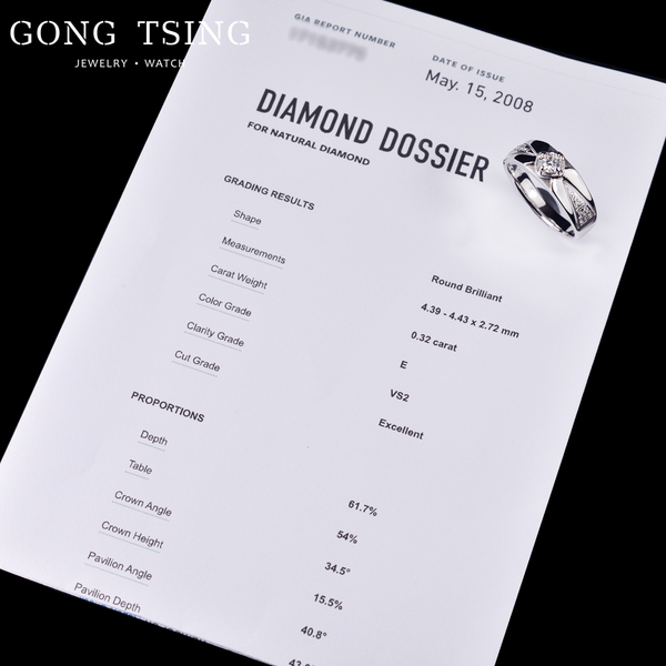 GIA男鑽戒 白K金 0.32克拉 E VS2 3EX 無螢光 八心八箭 30分 男戒 附GIA影本證書