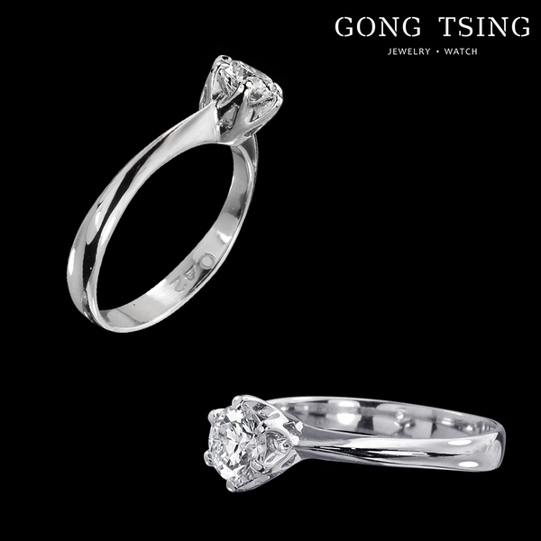 鑽石女戒指 白K金 0.42克拉 八心八箭 單顆美鑽 六爪鑲設計
