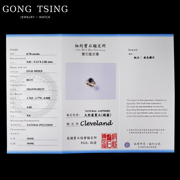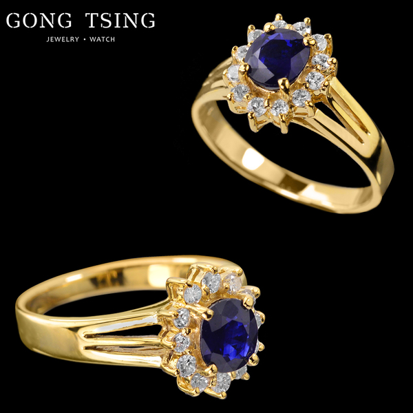 錫蘭藍寶鑽戒 黃K金 0.78克拉 天然藍寶石 戒指