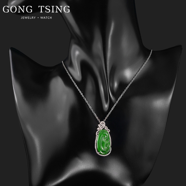 A貨翡翠如意鑽墜 白K金 鑽石翡翠墜子 附知名鑑定書 無附項鍊