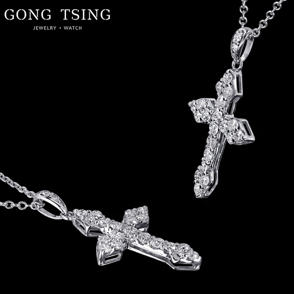 全新十字架鑽墜 18白K金 共0.30克拉 十字架墜子