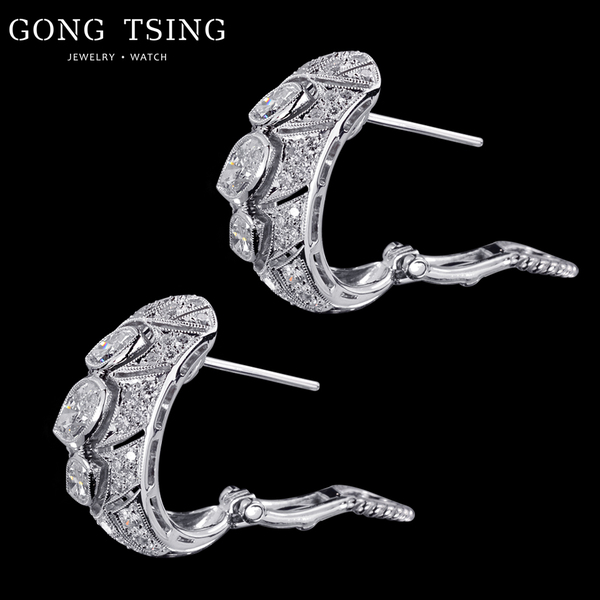 天然鑽石耳環 白K金 共約3.14克拉 拼鑽耳飾 豪華台