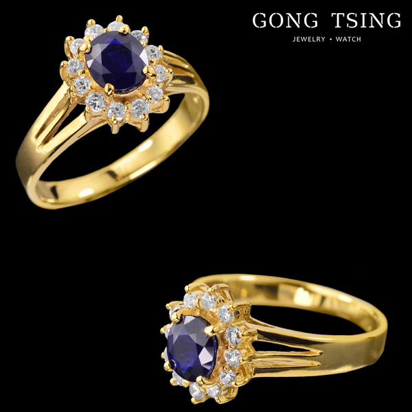 錫蘭藍寶鑽戒 黃K金 0.78克拉 天然藍寶石 戒指