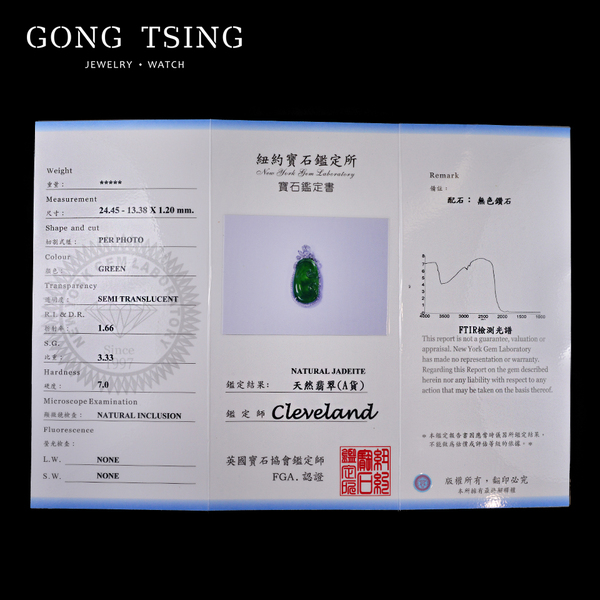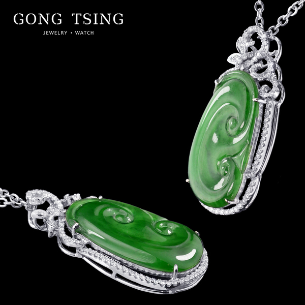 A貨翡翠如意鑽墜 白K金 鑽石翡翠墜子 附知名鑑定書 無附項鍊