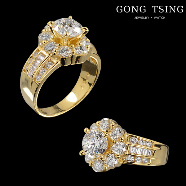 鑽石女戒指 黃K金 1.12克拉 1克拉 鑽戒