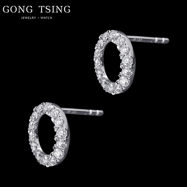 全新鑽石耳飾 18白K金 共0.26克拉 造型耳環 附K金矽膠耳束